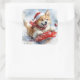 Akita Dog in Sledge Let it Snow Christmas Square Sticker