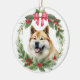 Akita Dog Red Bow Holly Wreath Ceramic Tree Decoration