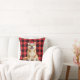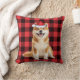 An Akita dog makes a cute Christmas pillow in his red Santa hat, then paired with a red buffalo holiday plaid to brighten the pet lover's holiday home decor.