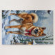 Akita Dog Serene Japanese Winter Christmas Jigsaw Puzzle