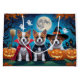 A playful Halloween scene featuring a mischievous little pup peeking out of a carved pumpkin, surrounded by spooky-fun fall vibes. With cheeky charm and autumn colours, it’s the perfect touch of humour for the season.