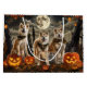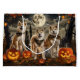 Unleash the spooky spirit with this eerie Halloween design featuring a pack of dogs under a dark, moonlit sky, surrounded by flying bats and glowing pumpkins. Perfect for those who love a touch of frightful fun with their furry friends!