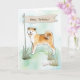 Elegant and noble, the Akita Inu is beautifully illustrated in this outdoor birthday scene. Its plush coat and alert posture stand out against the soft watercolor background, while a rustic flag banner waves overhead—an ideal card for those who appreciate the breed’s poise and loyalty.