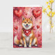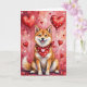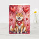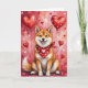 Akita Inu Valentine Dog Sitting with Hearts Red Card