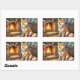 Akita Sitting by Fireplace with Christmas Lights Rectangular Sticker