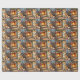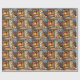 Akita Sitting by Fireplace with Christmas Lights Wrapping Paper