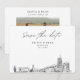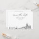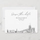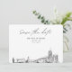 Modern Akron black and white save the date invitation. The front showcases a stunning sketch, setting the perfect tone for your wedding day. Add your own photo to the back and customise the text to make it your own. Enter the Zazzle design tool for additional design customisations.