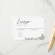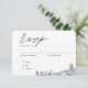 Classic minimalist script wedding RSVP enclosure card personalised with your information. Enter the Zazzle design tool for further customisation such as text placement or to add a fourth meal option. Be sure to compare the different paper types to select your favourite texture and check the full collection to purchase matching mailing envelopes.