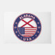 Badge of Alabama with flag of Alabama and flag of USA colours, rounded shape.