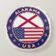 Badge of Alabama with flag of Alabama and flag of USA colours, rounded shape.