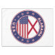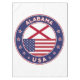 Badge of Alabama with flag of Alabama and flag of USA colours, rounded shape.