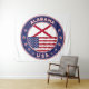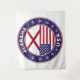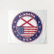 Badge of Alabama with flag of Alabama and flag of USA colours, rounded shape.