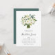 Elegant floral wedding invitations feature a bouquet of watercolor white roses and peonies with lush green botanical foliage and leaves. Personalize with your wedding details beneath in a chic mix of block, serif and handwritten calligraphy typefaces.