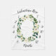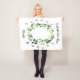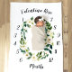 Surround your sweet babe in a wreath of white and ivory watercolor flowers and green foliage with this lovely photo backdrop featuring baby girl's name in hand lettered calligraphy script, and milestone months 1-12 around the perimeter of flowers.