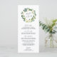 Our garden chic wedding menu features your starter courses, entrees and desserts in elegant lettering, with your names encircled by a green botanical and white floral wreath. Coordinates with our Alabaster wedding collection.