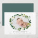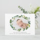 Elegant botanical birth announcements feature your sweet little one's photo (horizontal or landscape orientated) encircled by an oval wreath of lush green foliage and white flowers. Personalise with your baby's name and birth stats beneath.