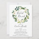 Elegant floral bridal shower brunch invitations feature a wreath of watercolor white roses and peonies with lush green botanical foliage and leaves, encircling "bridal shower" in chic handwritten lettering. Personalise with your bridal brunch details beneath.