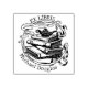 This "Ex Libris" rubber stamp features a aladdin lamp over books with a custom name.
