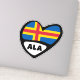 Åland Islands Country Code Flag Heart die cut sticker for car bumper, window, or water bottles etc.