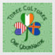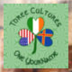The Åland Islands, Ireland and United States of America flags are found in this shamrock. Shamrock was designed to celebrate St. Patrick's Day, 4th of July, and Ålander holidays. Above the words THREE CULTURES show in dark green, circular, Celtic style letters. Below, in the same lettering, the words ONE YOURNAME. Add your name in the appropriate spot for to personalise. For a custom gift, add someone else's name. The background is is light green squiggly squares.