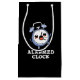 Alarmed Clock Funny Alarm Clock Pun Dark BG Small Gift Bag