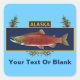 Based on a common military award the Combat Fisherman Badge commemorates surviving combat fishing in Alaska. It features a Sockeye Salmon, in spawning red coloration, on a dark blue background, over a conifer branch wreath. Text reading "ALASKA" is located at the top of the image. Add your own additional text. Salmon fishing is extremely popular in Alaska, too popular. Thousands of anglers, almost shoulder to shoulder, line both banks of salmon streams, each trying to catch a big fish while trying to keep his line from tangling with those of everyone else. Tempers can flare. This is called combat fishing.