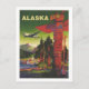 Alaska, Indian totem, aeroplane, vintage airline Postcard