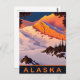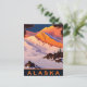 Alaska poster. Mountains covered with snow. Travel postcard in vibrant colours.