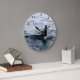 Unique photo designed acrylic round clock with orca whale gliding through the open sea. Exquisite design with bold numbers and a beautiful background of open blue sea. Great for den, office, garage, or home use. Available in three sizes.