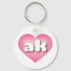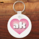 This keychain features a pink heart with a white-washed centre containing the bold, white, rounded, lower case letters ak, a playful abbreviation for Alaska, the last frontier.