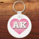 This keychain features a calm, cool, and collected pink heart with a white-washed centre containing the bold, white, upper case letters AK, the official abbreviation of Alaska, the last frontier.