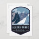 A vintage travel badge design of Mount Hunt, Mount Huntington and Mount Dickey of the Alaska Range near Denali National Park.