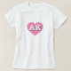 This t-shirt features a cool pink heart containing the bold white upper case letters AK, the official abbreviation for the state of Alaska, the last frontier.