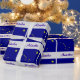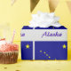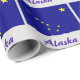 Wrap your gifts in Alaska style with this paper that features the distinctive star design in blue and gold of the Alaska state flag. Beneath each flag image is the customisable text in blue script "Alaska". The flag images and text are placed on a silver grey background.