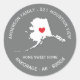 Unique State of ALASKA New home address label sticker set on a grey background with a red heart & aeroplane.