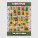 Alaskan Dog Countdown Christmas Advent Calendar Holiday Cards feature a watercolor of an Alaskan Malamute with a red Santa Hat and a red Christmas collar. Funny design for Dog Lovers!