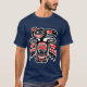 I give wanted to give this a 4 instead of a 5 because these Basic DARK T0shirts run unexpectedly SLIM or Narrow. Which is great if you do not have a potbelly, but I have a paunch. It isn't the shirt's fault that I've got a beer belly. The design and shirt itself is a quality cotton shirt. The color is more of a deep purple, but still a very pretty color. The Basic DARK T-shirts run a bit SLIMMER than the Basic Ts. The neck is a fraction narrower (or seems to be narrower) also. I'm a paunchy middle-aged woman and my neck is 12 inches (31cm) thick and the neckline fell about the same as in the photo of the man, and I had the desire to tug it a bit. So if you're a thick necked man or like loose shirts, be aware these are slimmer shirts. Once I get rid of my lockdown paunch it'll look great. The shirt washed well in cold water with no apparent bleeding. We don't have a dryer, so it hung dry. Did not shrink. Love the colors and the design. The design looks smaller on my shirt than it does on the model on-line. But still, it looks good on the shirt. The printing looks as it does on the model, just the size seems fractionally smaller. Washed garment in cold water, hung dry and design appeared unaffected.