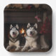 Alaskan Malamute by the Fireplace Christmas Paper Plate