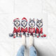 Powerful and friendly Alaskan Malamutes, built for arctic conditions, look cozy and festive in their Christmas Santa outfits! A great design for fans of large, northern breeds.