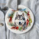 Alaskan Malamute Christmas Wreath Festive Pup 6 Cm Round Badge