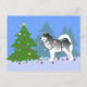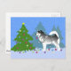 Alaskan Malamute Decorating Christmas Tree Holiday Postcard