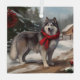 Alaskan Malamute Dog in Snow Christmas Glass Tree Decoration