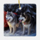 Alaskan Malamute Snowy Sleigh Ride Christmas Ceramic Ornament