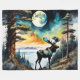 Alaskan Moose Under the Moonlight on a Forest Ridge overlooking the Ocean