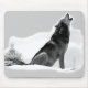 Image "By Remi" of a howling Alaskan Timber Wolf in the winter snow.