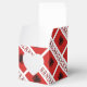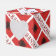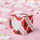 Diagonally tiled design featuring the Albanian flag with the word, ALBANIA, underneath. A space of white, squiggly squares holds a place for your name. Add it for a personalised look or create a customised heart favour box for your guests.