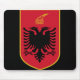 The Emblem of the Republic of Albania (Albanian: Stema e Republikës së Shqipërisë) is an adaptation of the flag of Albania. It is based on the flag and seal of Gjergj Kastrioti Skanderbeg. The crest above the head of the two-headed eagle is the helmet of Skanderbeg, surmounted with billy goat's horns. The eagle is considered to violate the conventional rule of tincture, which forbids placing a colour (i.e. a dark tincture) upon another colour.
