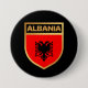 The national flag of Albania is infused into a faux gold shield shape along with the country name above the flag.