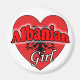 Leuke magneet met een hart afgebeeld met de Albanese vlag erop. Op de tekst staat: Albanian girl De achtergrond is in de kleur wit. Leuk om te geven als cadeau of voor jezelf om te laten zien dat je trots bent om Albanees te zijn. kleuren: zwart en rood.