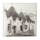 A beautiful tile for use around the home with an image of trullis in Alberobello, Puglia, Italy.